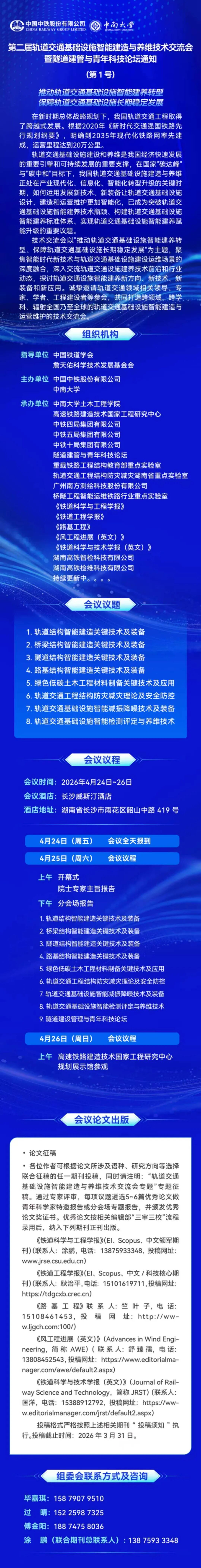 第二届轨道交通基础设施智能建造与养维技术交流会暨隧道建管与青年科技论坛通知(第1号)